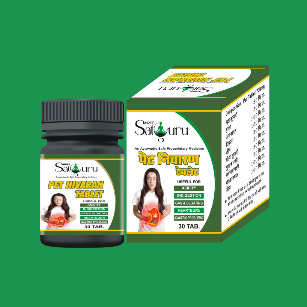 Pet Nivaran Tablet is an Ayurvedic formulation designed to support digestive comfort and stomach health. Made with traditional herbal ingredients, it helps manage acidity, gas, and indigestion naturally while promoting overall digestive wellness.